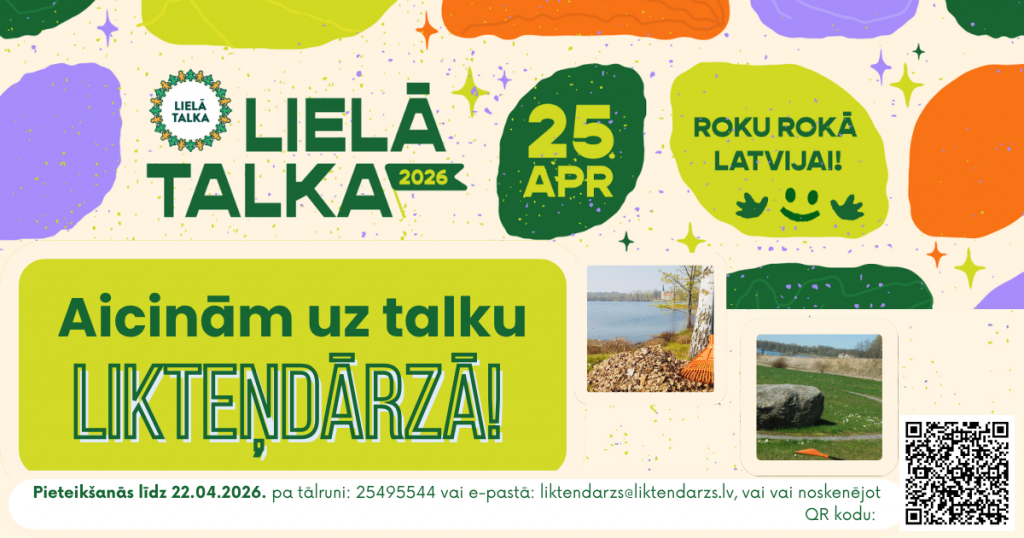 Aicinām talkot gribētājus pieteikties līdz 22.04.2026 zvanot pa tālruni 25495544, rakstot uz e-pastu: liktendarzs@liktendarzs.lv vai aizpildot elektronisko pieteikšanās anketu: https://forms.gle/kEXZtgTgC8cy4Rrm7.